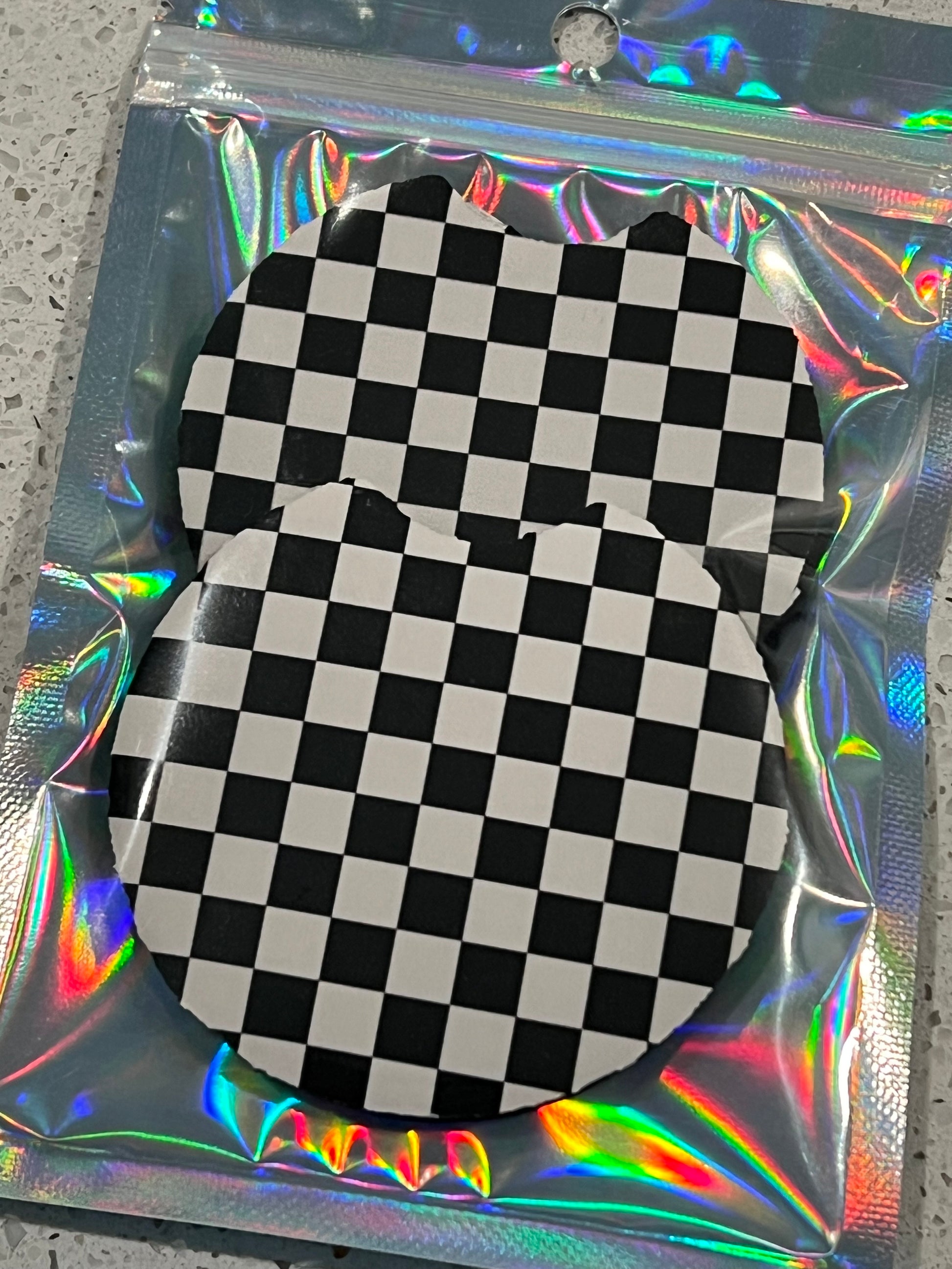 Rainbow Alien Design car coasters. Waterproof coasters, perfect for keeping your cupholders clean!